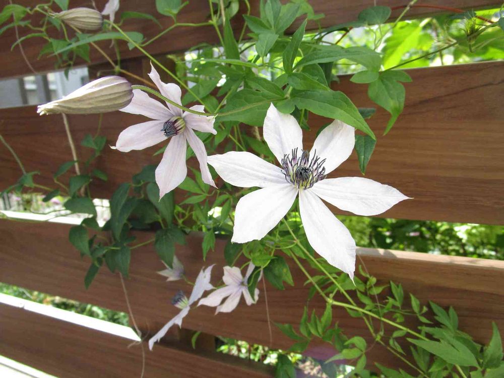 クレマチスは私もあんまり扱いがわからないけど、虫や病害にも強いイメージで育てやすいよ。あと誘引をまめにした方がきっといいのかも…サボりがちですぐこんがらがるけどね💦
