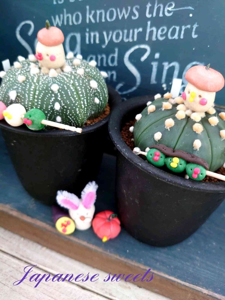 先日の兜サボテンに和菓子可愛い🍡