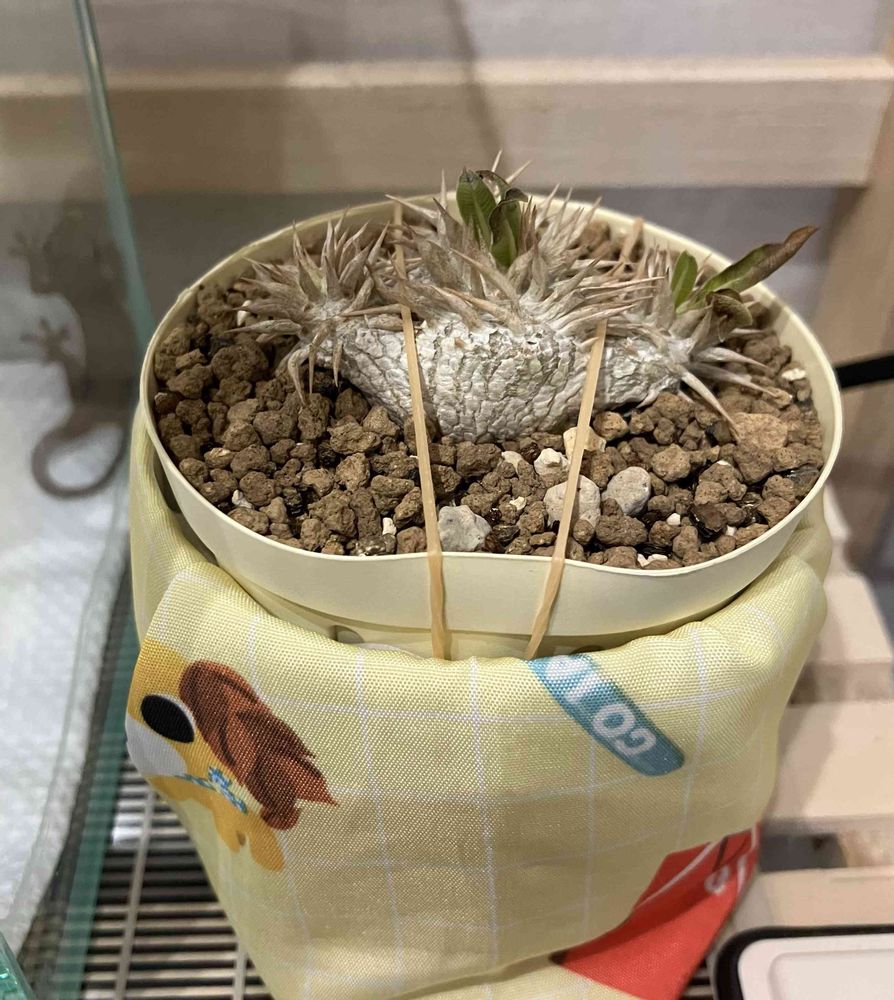 ただ朝晩冷える様になったのと、土の温度が発根に重要とのことなので、ヤモリのヒーターを半分借りて温めることにしました。日当たりはあまり良くないですが💦復活します様に🙏