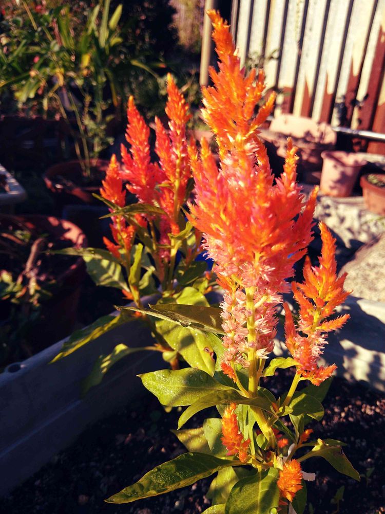 オレンジ色,鉢植えの花,けいとうの花の投稿画像