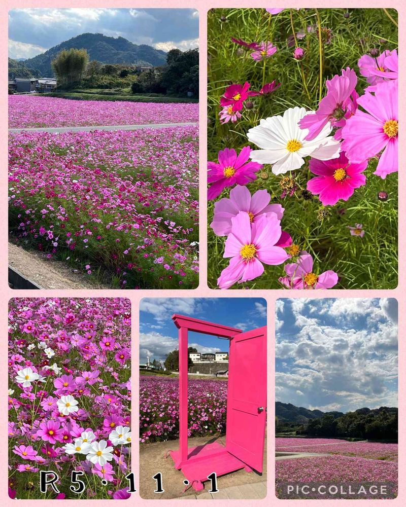 満開のコスモス畑・・ピンクのどこでもドアがコスモスとマッチして心癒されました🩷🩷🩷