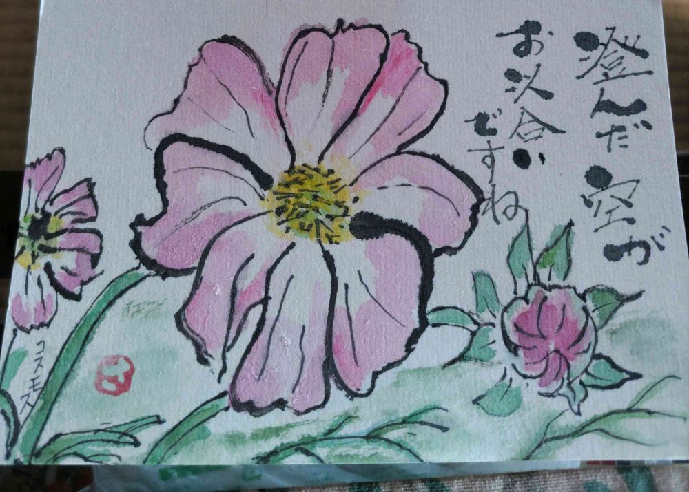 GSに感謝。,コスモス♡,絵手紙の投稿画像