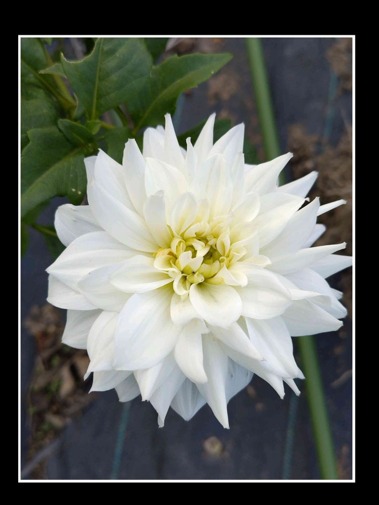真っ白なダリア 切り戻ししたら新しい茎からの開花です 凄いね◡̈⃝◌♡⃝⑅⃝🫰🏻🤍 ̖́-🫰🏻🤍 ̖́-