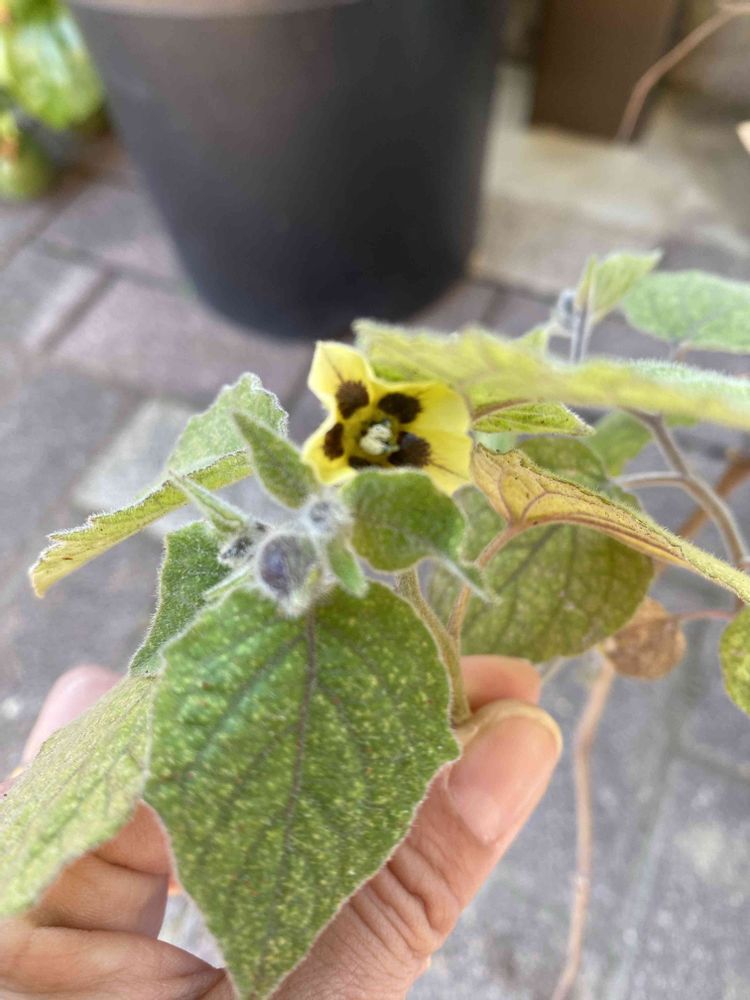 お盆にたまたま行った遠くの園芸店で見つけた食用ホウズキ、11月になって今更ですが初開花しました😅