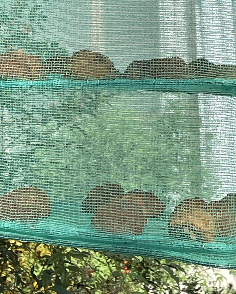 3段ネットで簡単に出来たし虫避けにもなったし自分で作ったのって感慨もひとしおやったわ〜ちとオーバーかな🤣