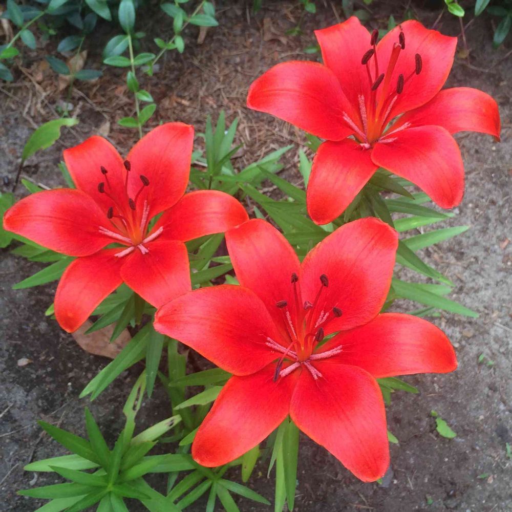 真っ赤のようで、オレンジのような百合が咲きました😀❤️