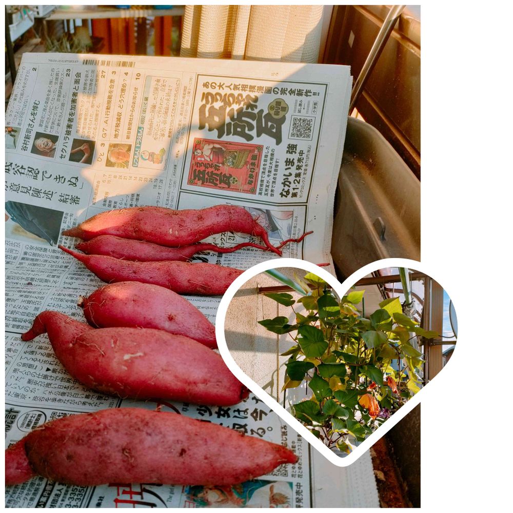 ベランダ、袋栽培のサツマイモを収穫しました。😄