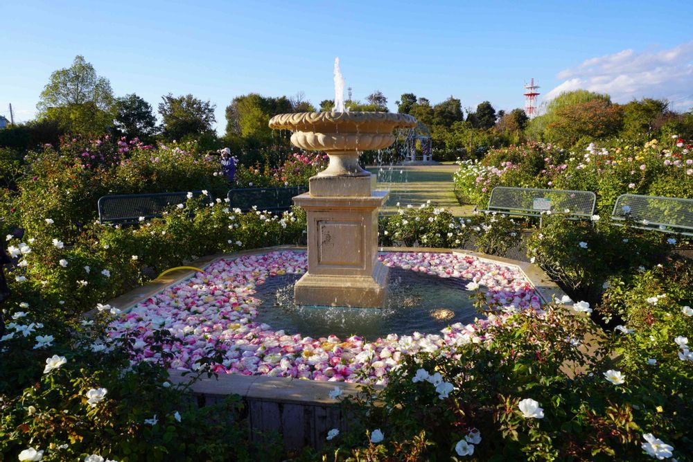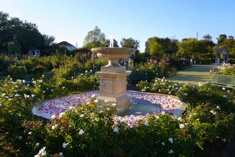 春や秋のバラシーズン 期間限定で噴水にバラを浮かべてフローティングフラワーを行っているみたい。