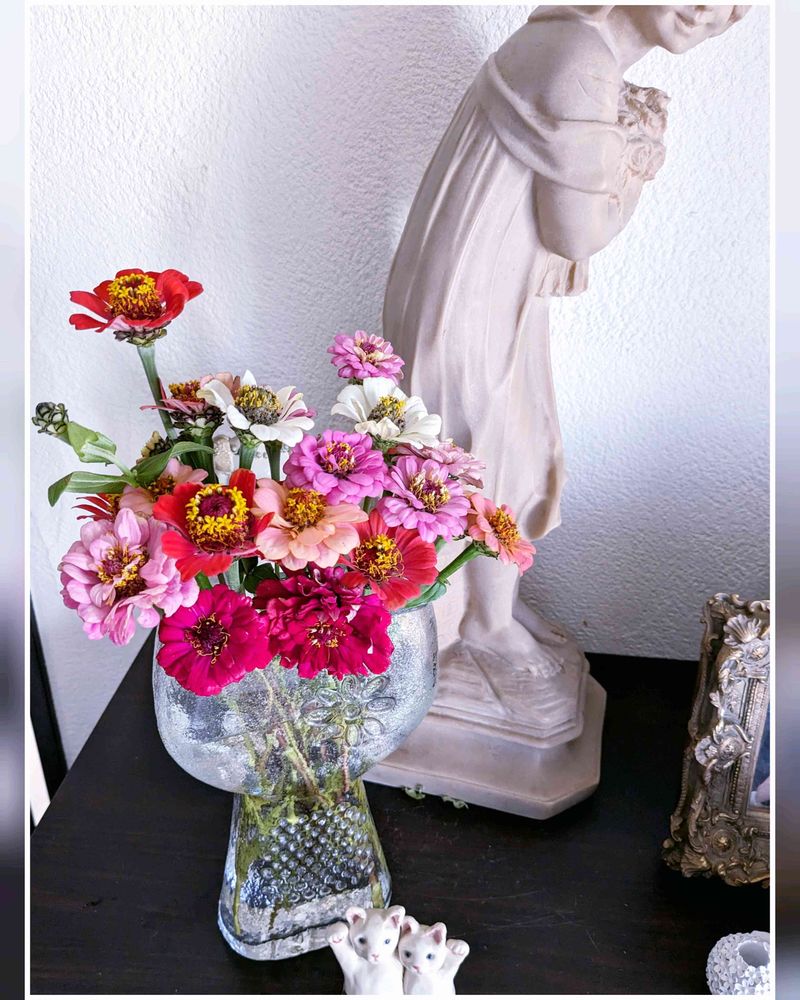 最近、やっとお花をつけたジニアも……♡長く楽しめます🎶😄🎶😞