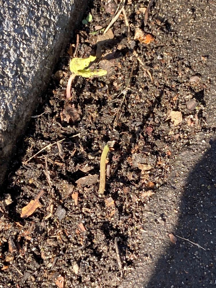 昨日の強風でまた大量にたまった道路の枯葉を掃除してて、Σ(゚□゚)あっ!!と思った瞬間時すでに遅し、昨日見つけたど根性アサガオさんまでお掃除してしまい葉っぱが無くなってる🥲、、、あら?もう1本伸びてる😳新たなど根性さんが出てきていました😲しかも🧹にも負けず本物のど根性だ!