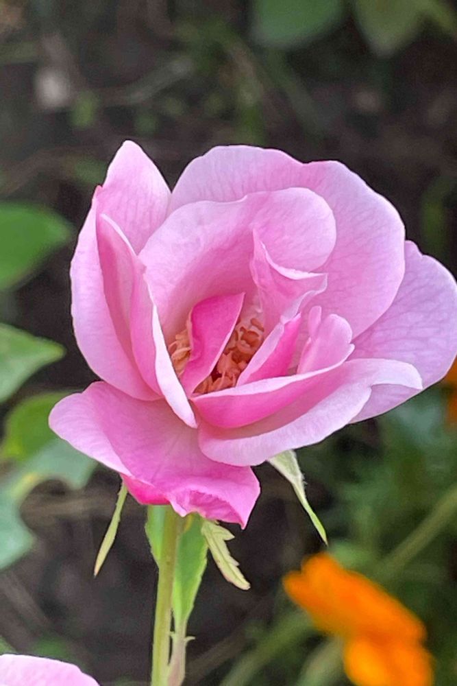 優しいピンク色のミニバラ、かわいい❤️です。庭に出てこんなバラがあれば楽しいですね。