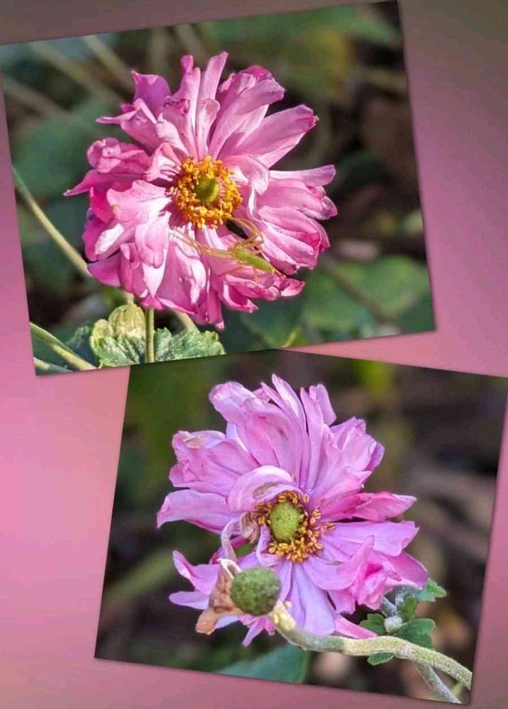 花壇の八重のピンクの秋明菊もそろそろ終わりです