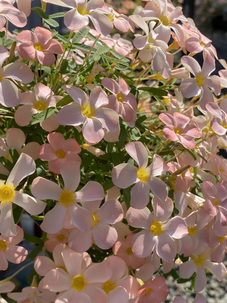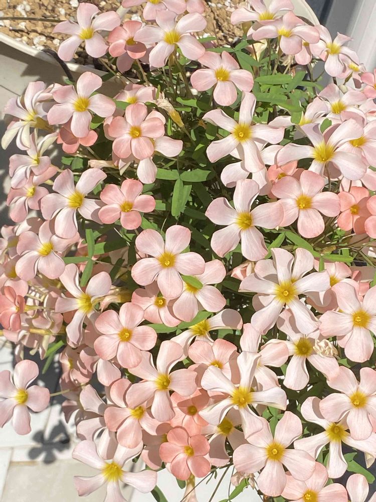 オキザリスを中心に、小さな庭で花を楽しんでいます。