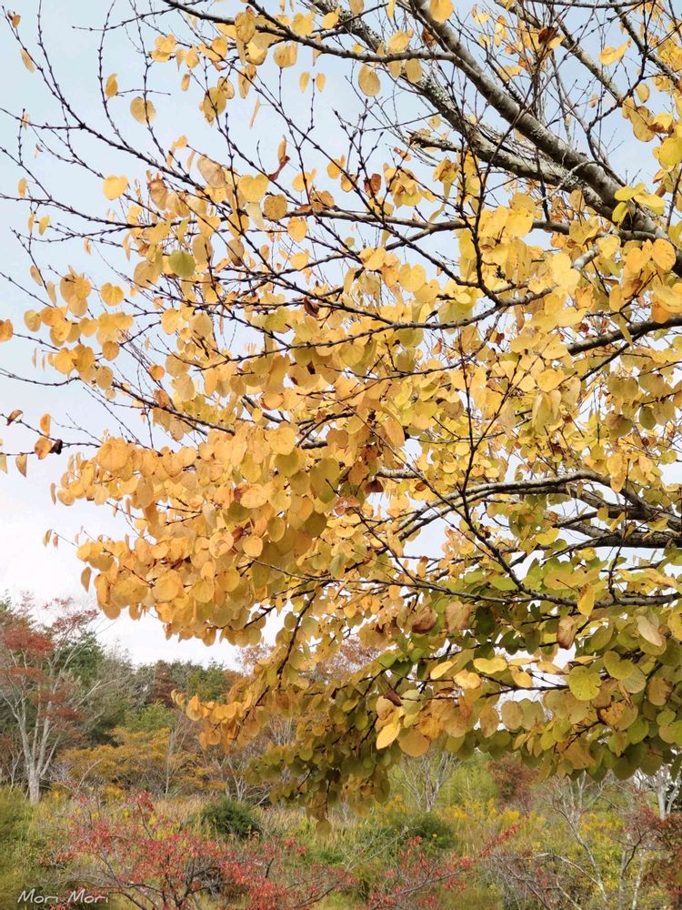 桂は近くを通る(花も嵐も踏み越えて〜♫)と、落ち葉の甘〜い香りで存在に気が付きます。丸い可愛い黄色い落ち葉、里山で出会うと嬉しいですね。!。