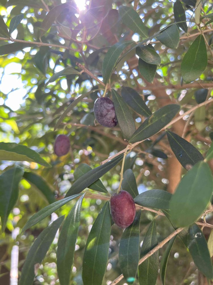 夏の間にすっかり繁り、細い枝が多くなったり、徒長幹、ができたりしていたオリーブの樹を剪定しました。今日は暑くて汗だくになりましたが、オリーブの実がなっていることがわかりました❣️
