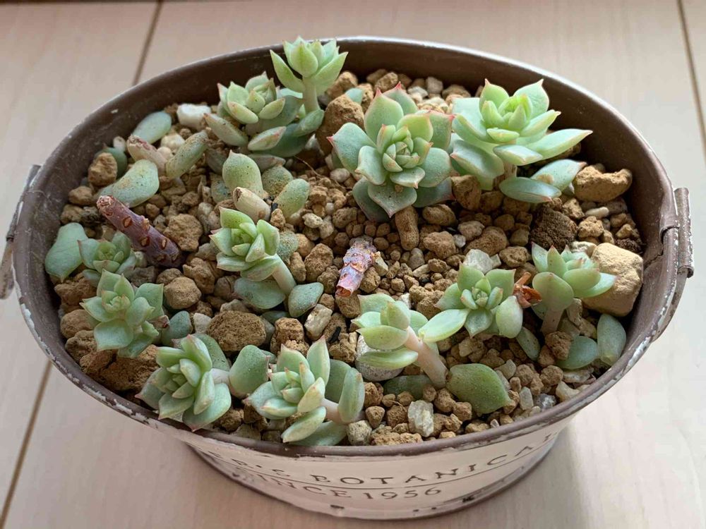 エケベリア静夜 徒長気味に伸びた枝を折って同じ鉢に土足してそのまま挿しまくりました。