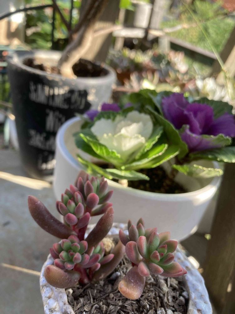 後ろの葉牡丹は寄せ植えの相手が決まらないので待機中😅