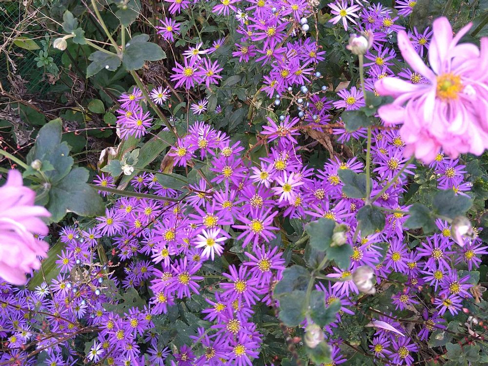 ②③④は満開になった我が家のノコンギク、秋明菊やミズヒキが入り込んで華やかです🩷💜💕