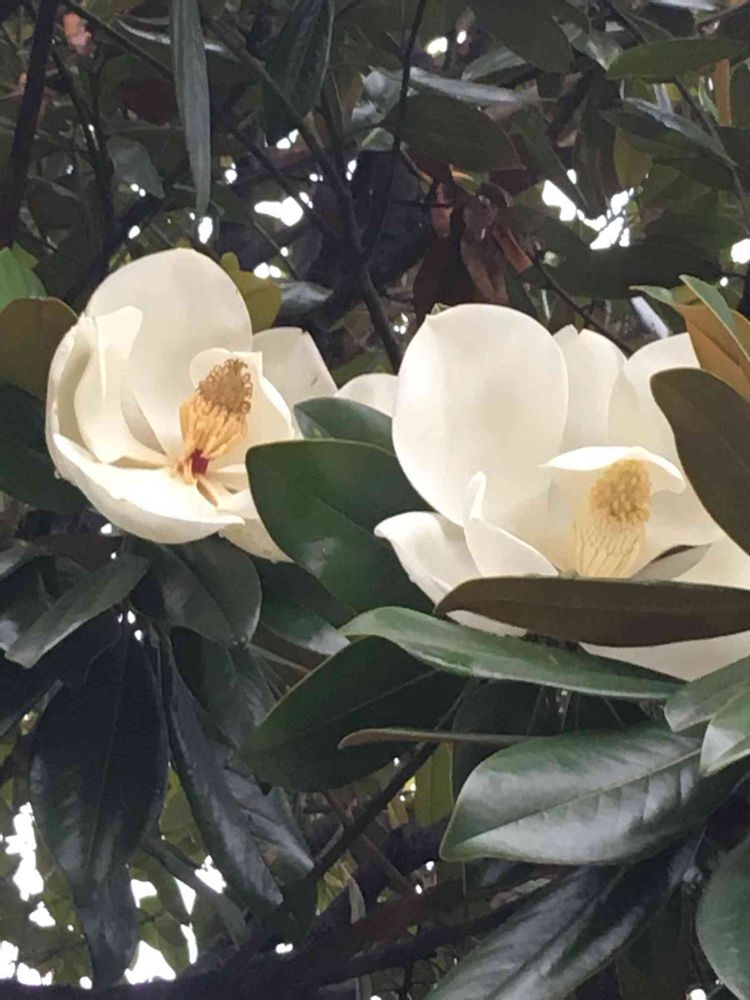 マンション入口辺りにドーンとそびえるタイサンボク(泰山木)