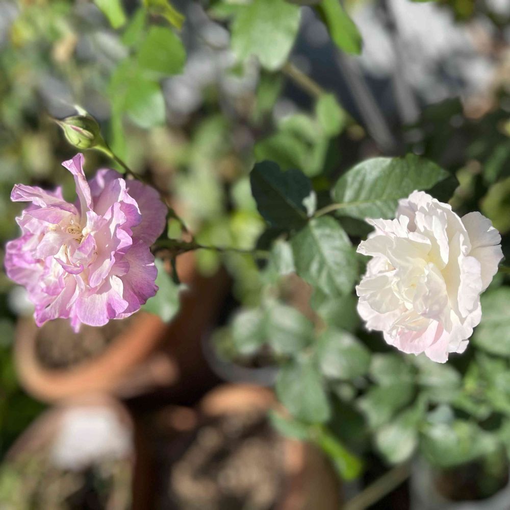 カメオ🌹以前希少なバラだとどこかで見た記憶があります♪昨日ふと立ち寄った園芸店で見かけ、可愛かったのでお迎えしてみました😊奇跡のバラとのことですがさあどんなかな?咲き始めは白っぽく段々紫になるようです💜