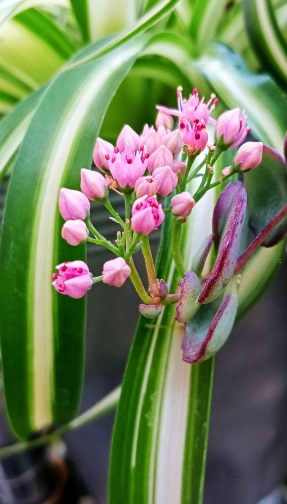 オリズルランの葉っぱから🌷あ花が咲いてるように見えました〜😊