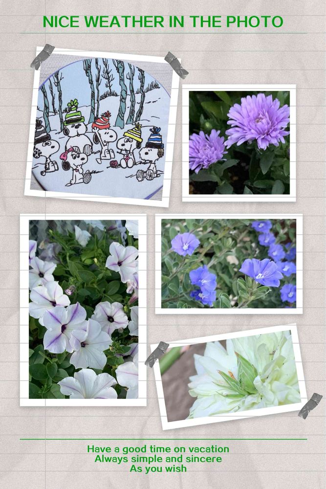 青と紫と白いお花さんとスヌーピー兄弟❣️
