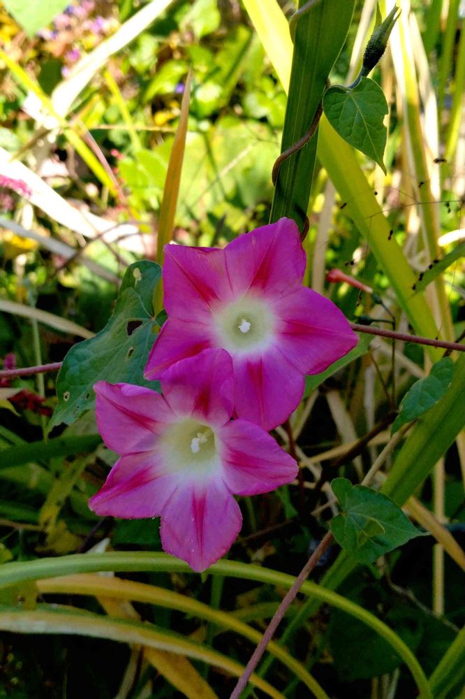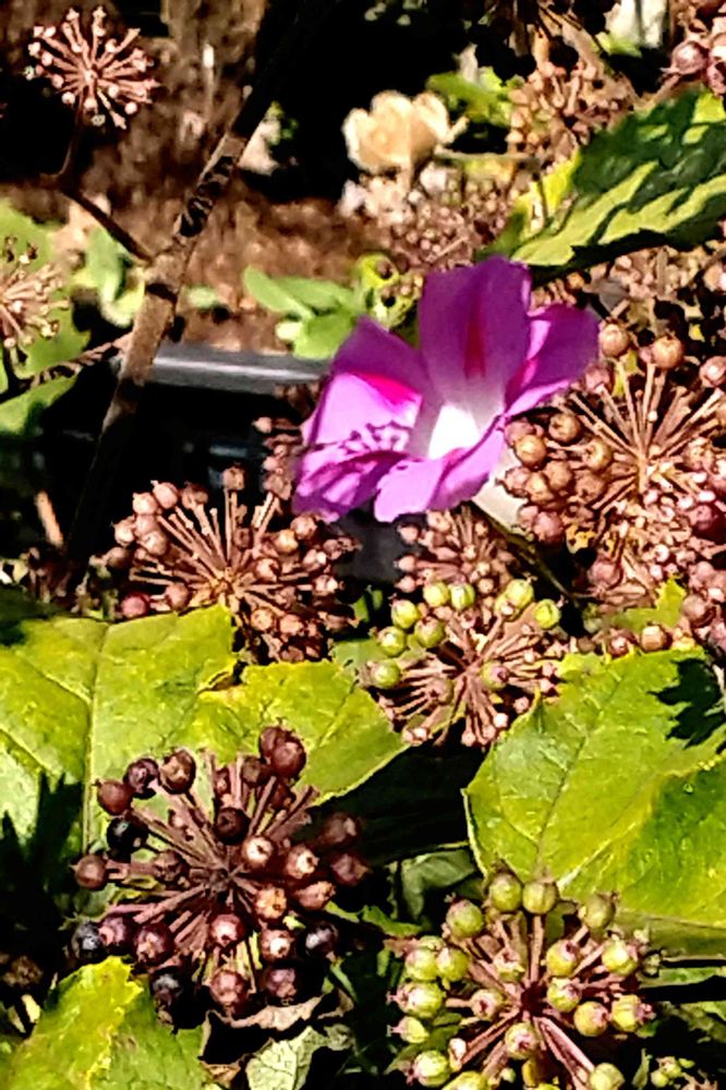 夏の名残りのように🍂になって咲き始めた可愛いアサガオ🤍に釘付けです💗