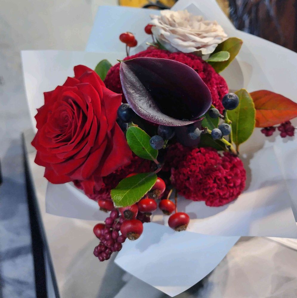 今日はお世話になった方にバースデー💐薔薇を素敵なフラワーショップのイケメンに頼みました😆💟👌