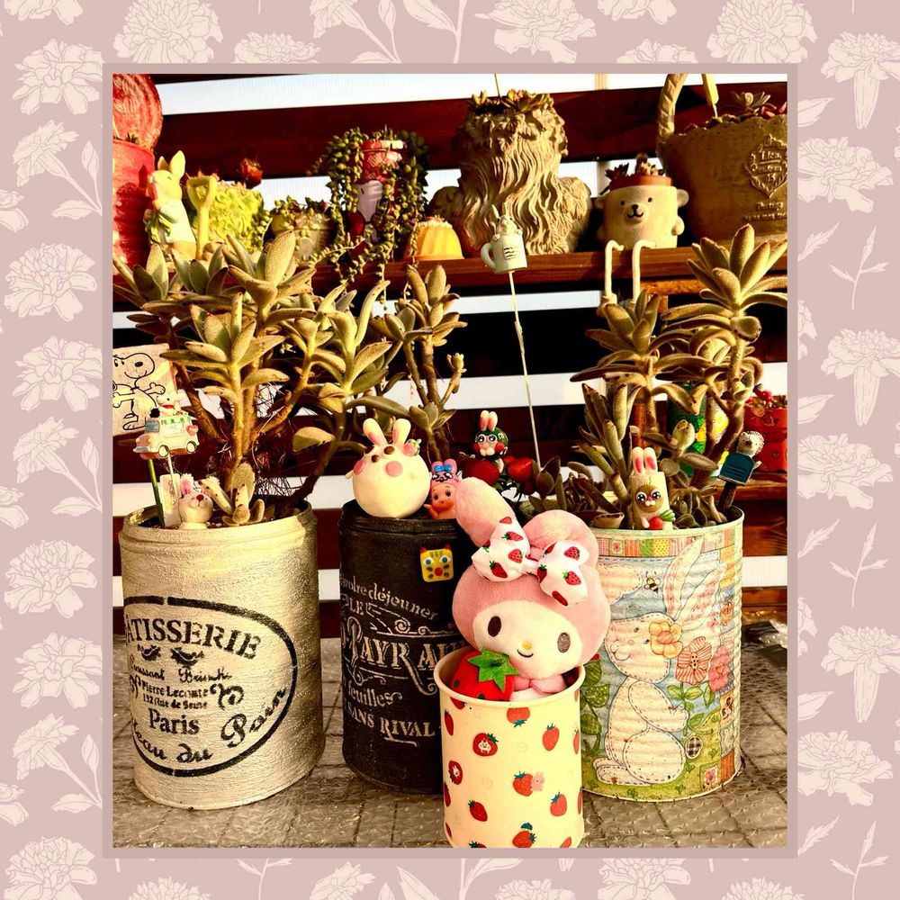 リメ缶に何植えようかなって思ってたけどマイメロがシンデレラフィットし過ぎたのでこのまま飾ることにしたよ〜💕