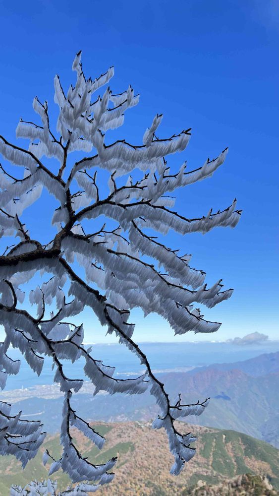 昼頃、下山した時霧氷を解けて強風を吹いた時雹みたい降っていた。痛っ痛っ😂