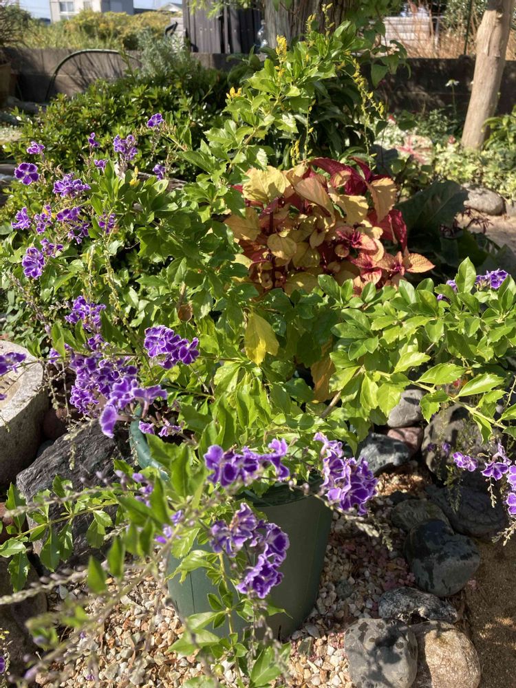④ドュランタ宝塚💜とコリウス♥️の紅葉がキレイ〜✨✨でもウワサ通りの暴れん坊ー(笑)春に地植えしてみようかなぁ