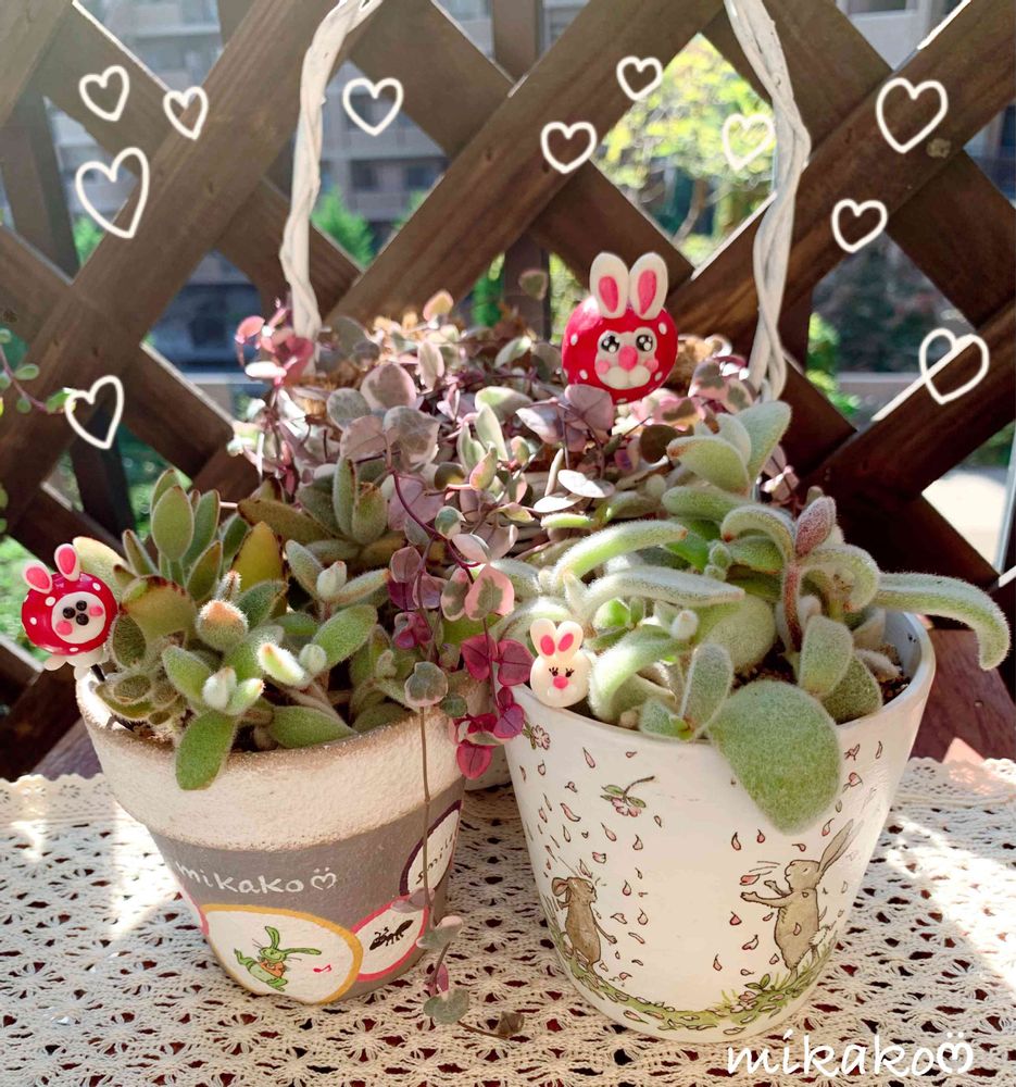 ちょりさんがmikakoのネームを入れてくれた🐰ちゃん鉢には耳シリーズをINしています😊♪
