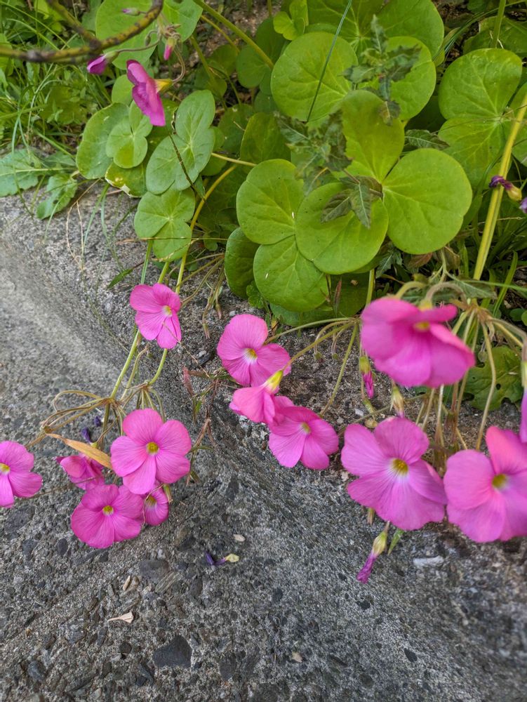 マンション構内の通路脇に大きめのオキザリスが咲いています。