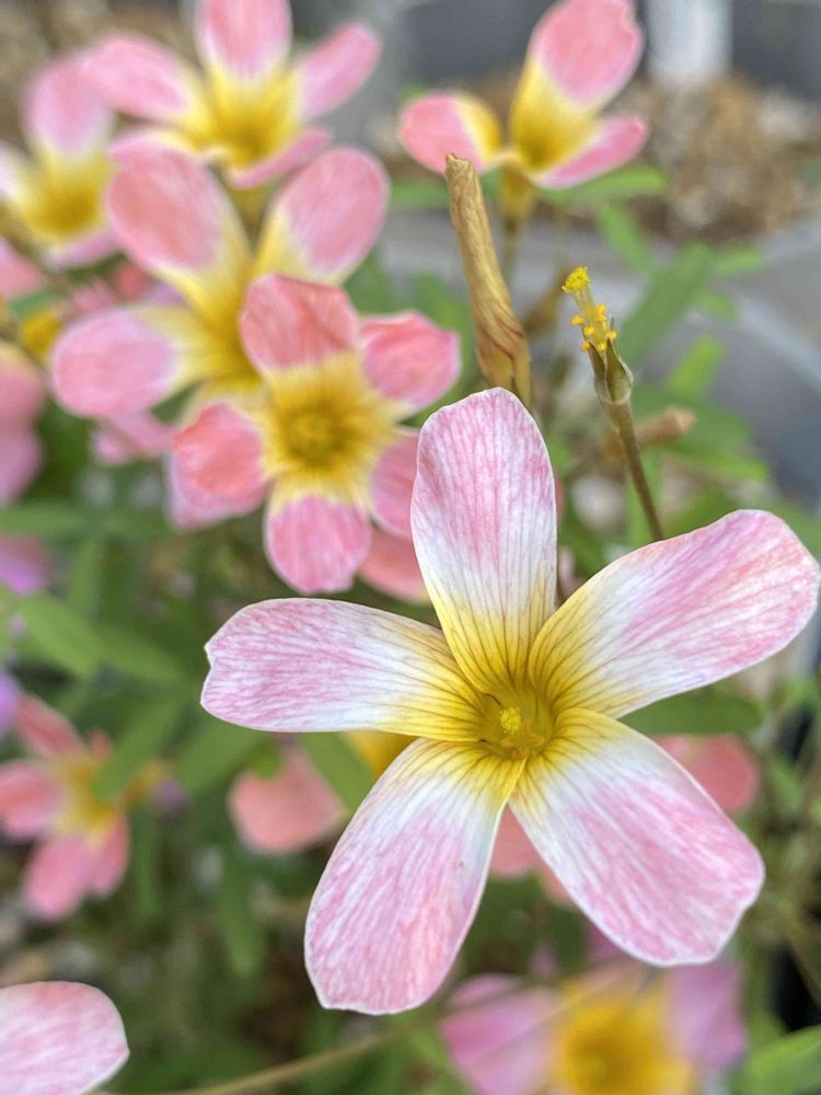 オキザリスを中心に、小さな庭で花を楽しんでいます。