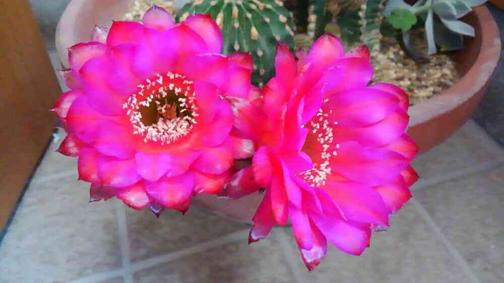 おはようございます、起きたらすぐにサボテンに直行。あれ?今まで育てたロビオプシス達と花びらの形が違うぞ?? と言うかなにこの色輝いておられるー!