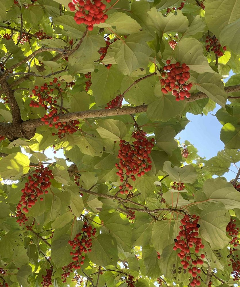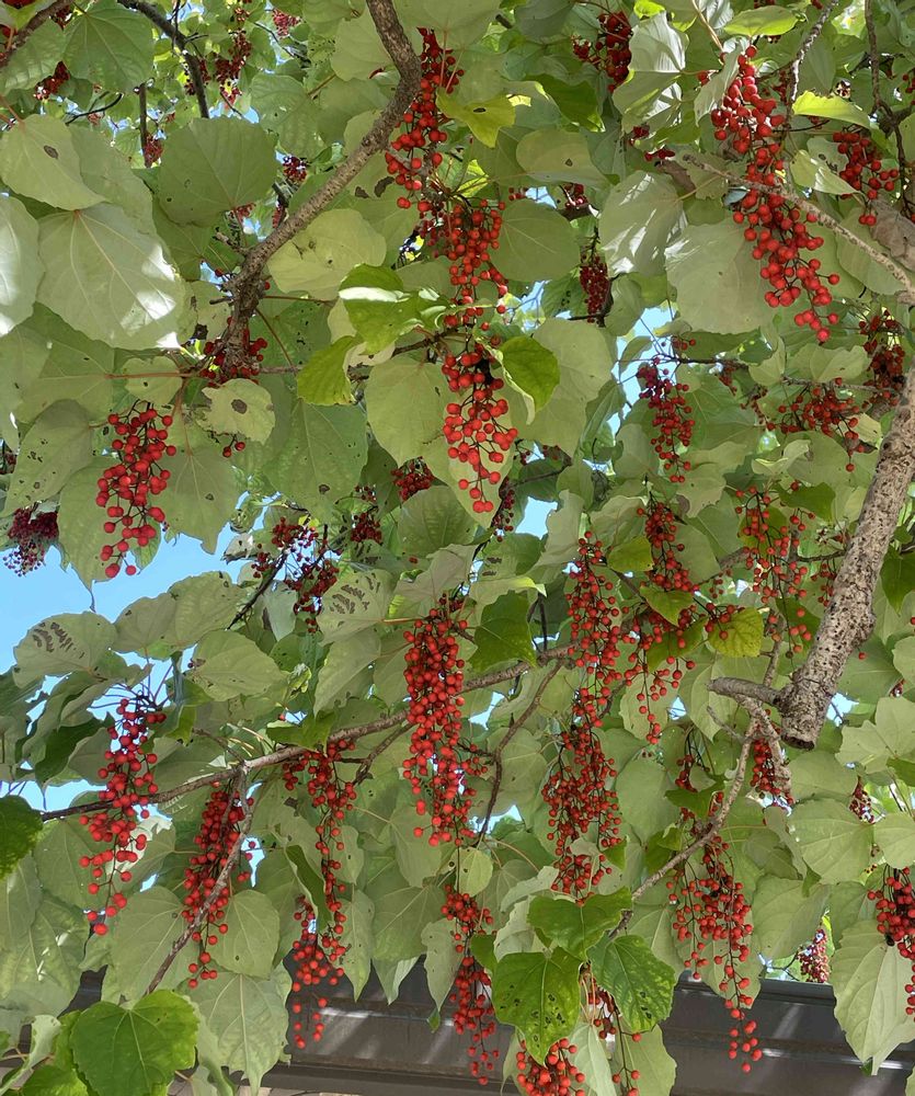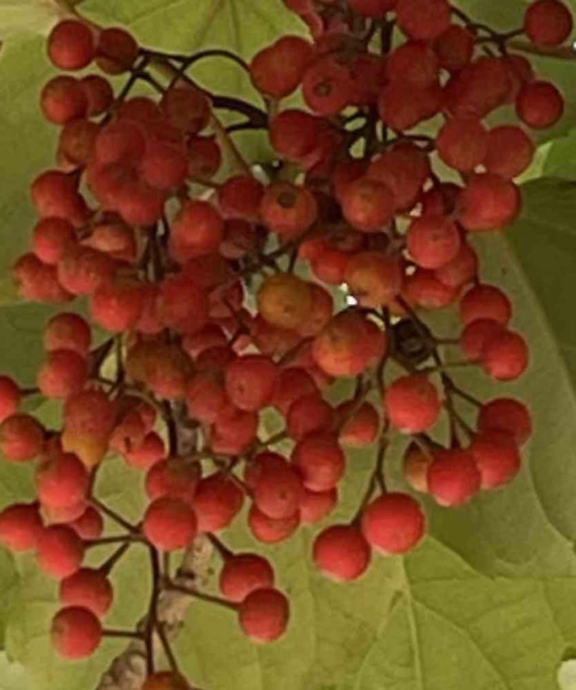 花植木センターの飯桐の高木に沢山の真っ赤な実がぶどうのようにぶら下がってました🔴🔴🌱🌱