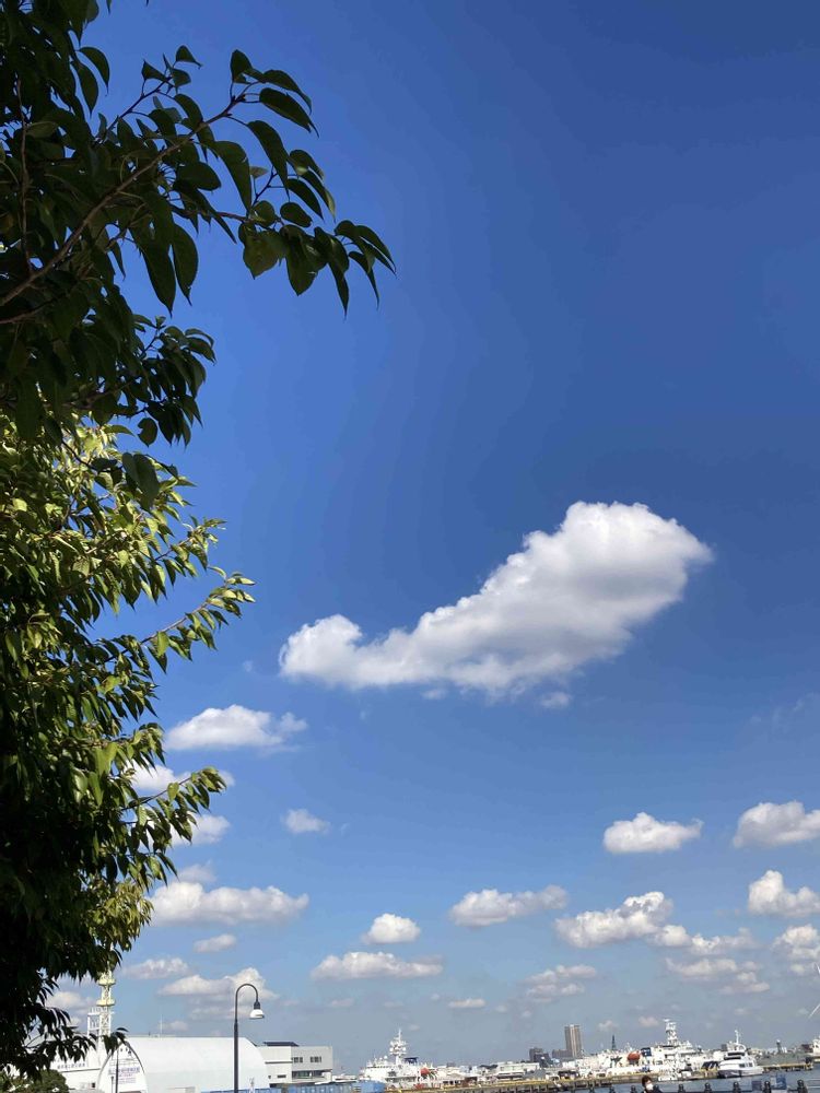 青空の海でゆうゆうと泳ぐ、クジラ雲🐳