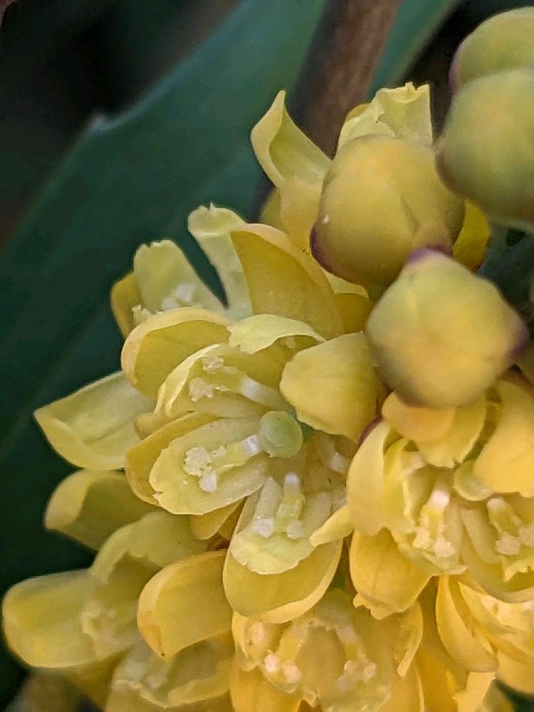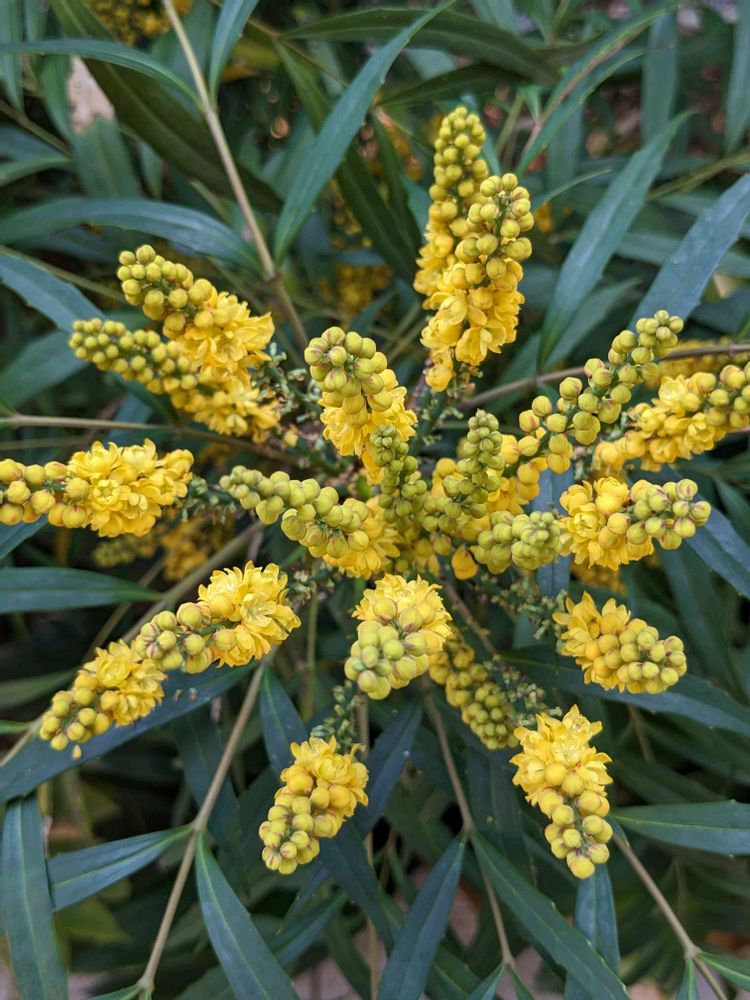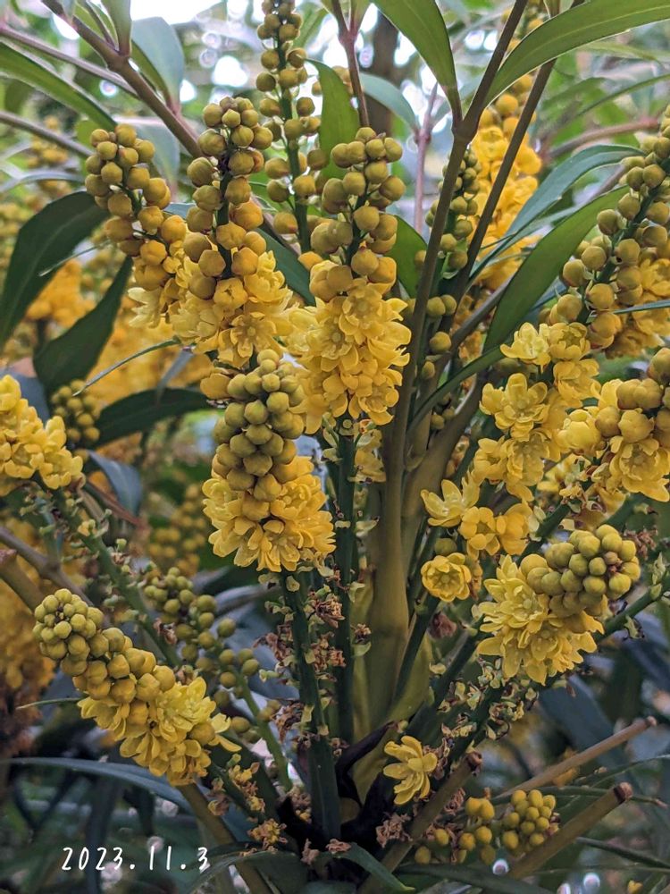 先週の日曜日に 私は ホソバヒイラギナンテン 近所で 咲き始めてる🌼を目にしました👀