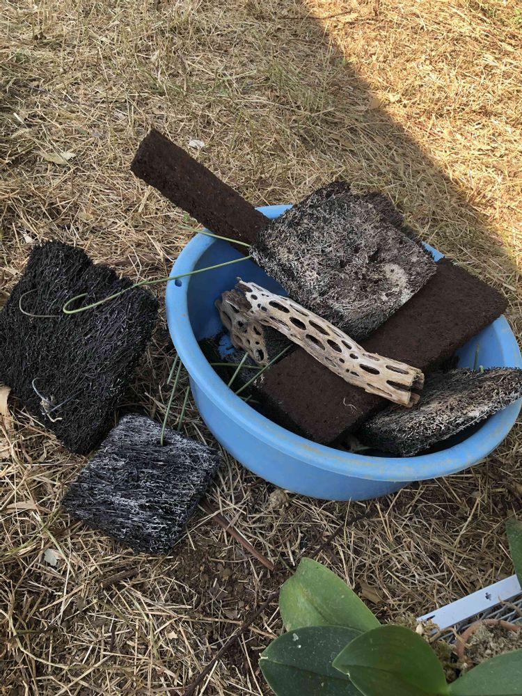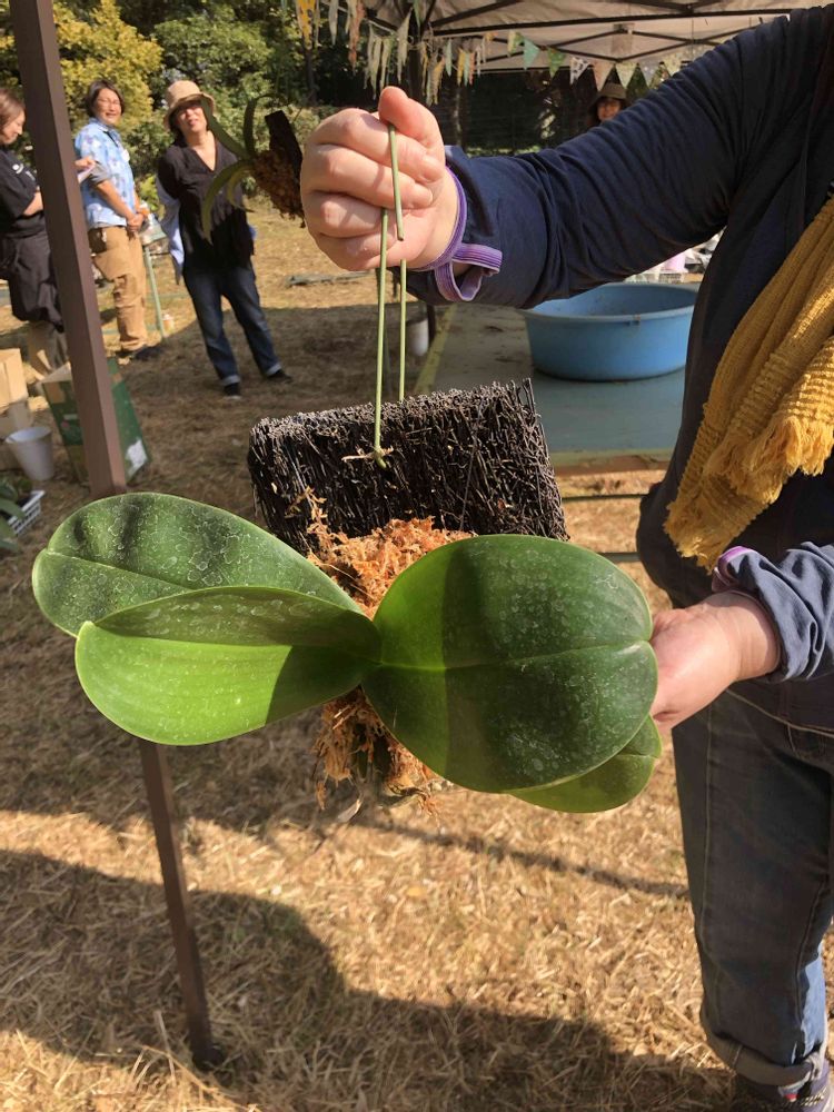 後半の時間は胡蝶蘭のへご板付けです。水苔と釣り糸を使いました。