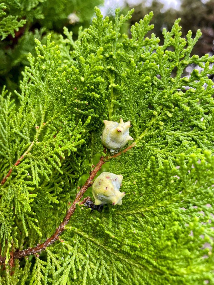 まだ、GSを始めたばかりの頃、近所にこの子を見つけ、ネットで調べて、「カイヅカイブキ」として投稿したら、フロワーさんに、「コノテガシワ」ではないかと🤔