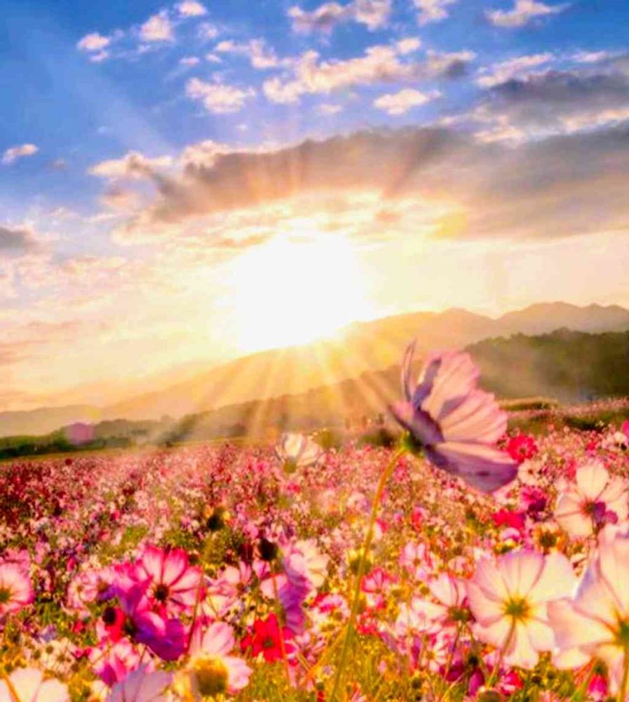 コスモス畑の夕暮れは夢物語の中に入るようです😆🎵🎵