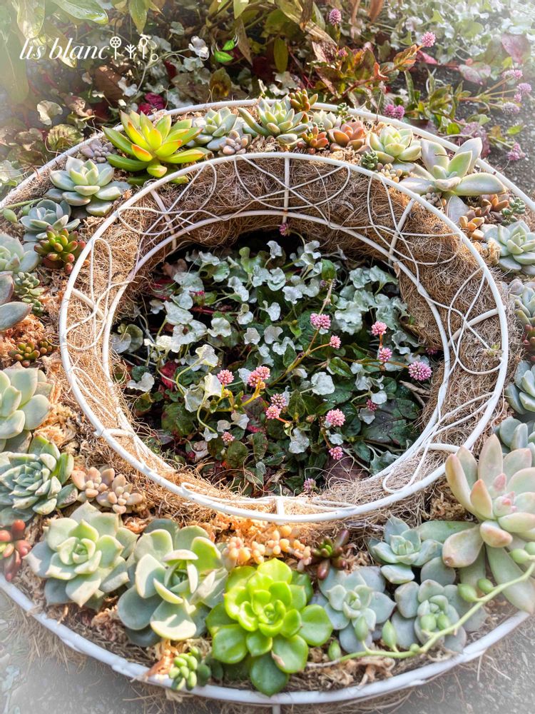 リースの真ん中には、ポリゴナムがまた可愛いね😍