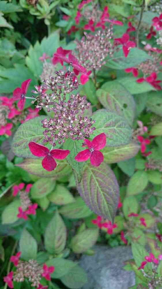 山アジサイの紅です。淡いピンクからこんな赤に変化していきます✨