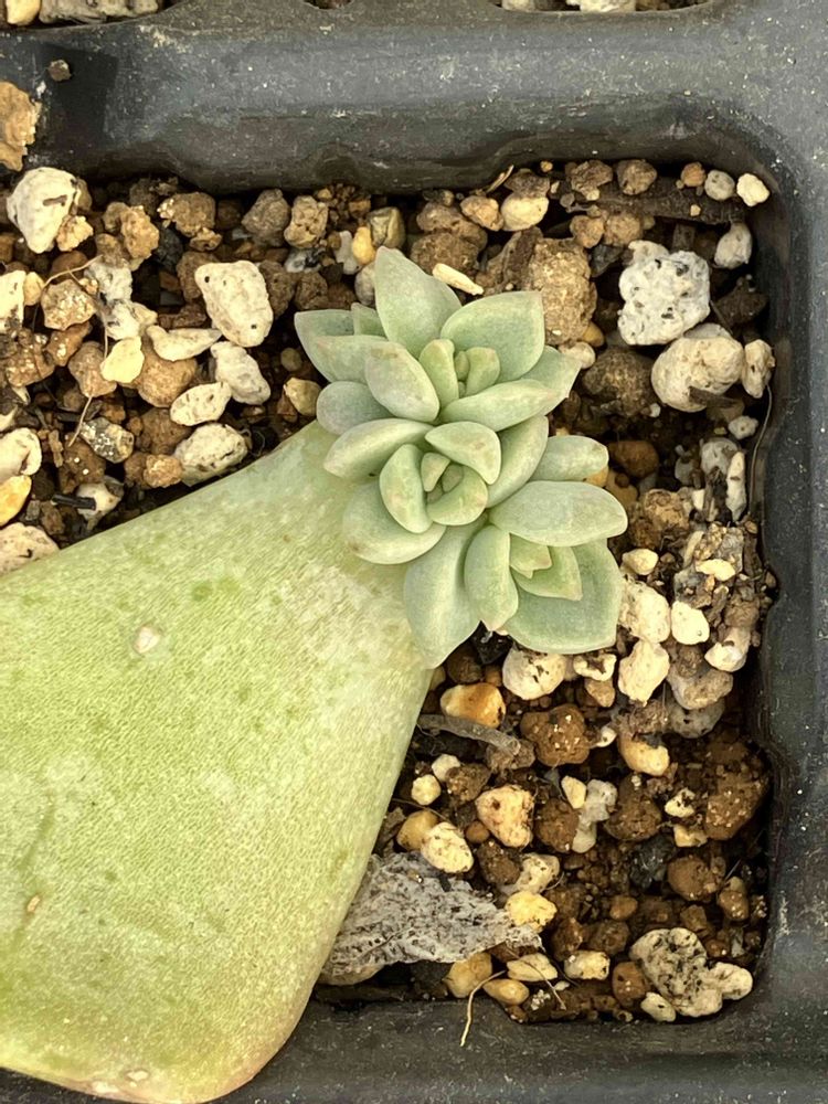 複数枚投稿できるんですね😃先日植え付けただるま姫秀麗、しっかり根付いてぷくぷくです。そして2枚目の葉挿し白牡丹もぷくぷく育っています✨