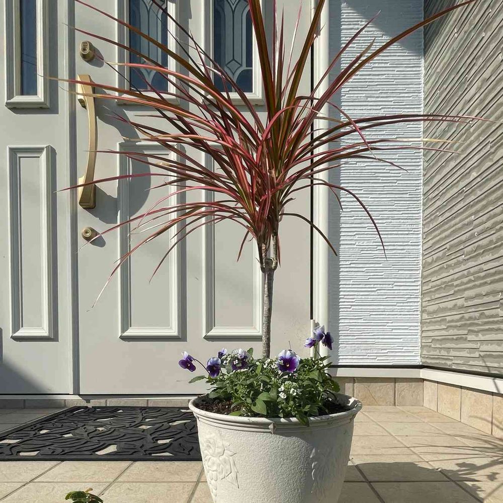 枯れかけの状態から復活して長く伸びたドラセナレインボーの足元が淋しくなってきたので、ビオラ(ビーコンフィールド)とアリッサムを植えてみました。