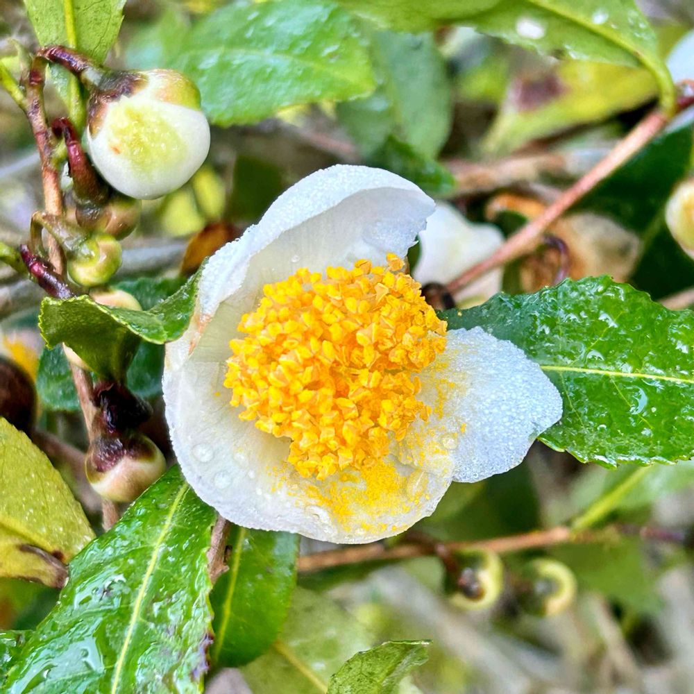 丹波市「高源寺」で咲いていた「チャノキ(茶の木)」