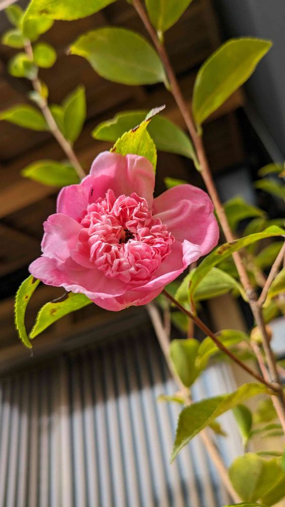 椿だと卜伴(ぼくはん)とか、紅唐子(べにからこ)とか同じ様な咲き方の唐子咲きの品種がいくつかありますけど、山茶花では珍しいと思いますよ✌️