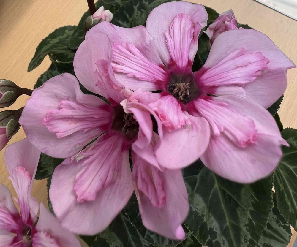 シクラメンのイリュージアを見て来ました。ミニシクラメンで上を向いて咲いているのでとても花が大きく見えました。葉っぱを見ないとシクラメンには見えない程豪華なお花です。