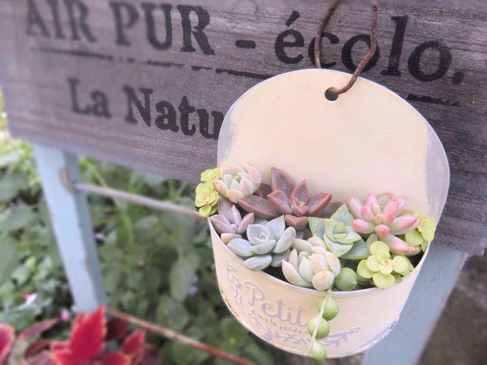 セリアの小さなハンキングに多肉ちゃんを寄せ植えしました💗🎶