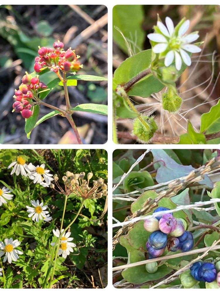 2️⃣道端の花たち(自転車なのでハイパチリで終わり 3️⃣駐車場にあるアキニレの果実 4️⃣谷中村にある大きな🌲